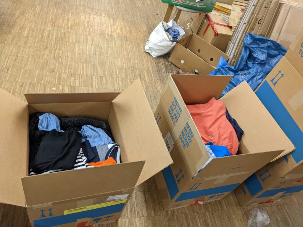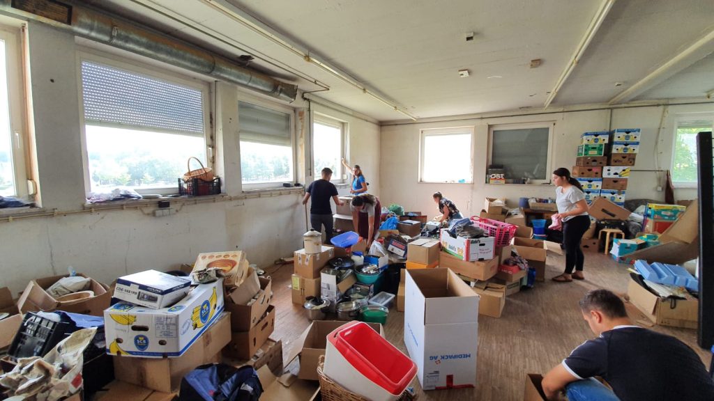 An diesem Werk ist jede helfende Hand gefragt. Hier werden Geschirr, Kinder- und Erwachsenenkleidung sortiert und in Pakete gepackt. Betten, Sofas und Haushaltsgeräte werden nach Absprache abgeholt und in die Halle gebracht.