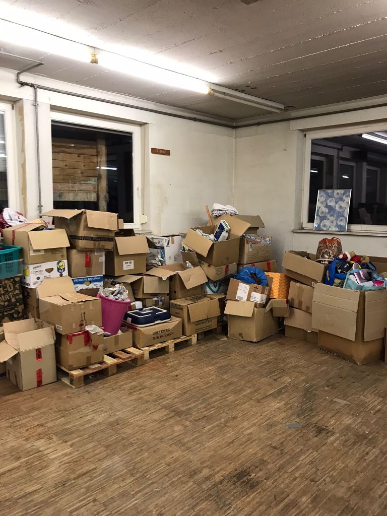 Der Sinn und Zweck der Halle ist: Spenden annehmen und lagern und diese für Transporte in die bedürftigen Länder vorbereiten.